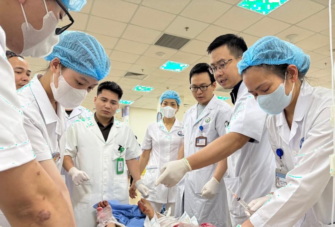 Các bác sĩ Bệnh viện Hữu nghị Việt Đức trực tiếp thăm khám lâm sàng, đánh giá nhanh mức độ tổn thương và chỉ định phương án xử trí cấp cứu phù hợp cho từng trường hợp.