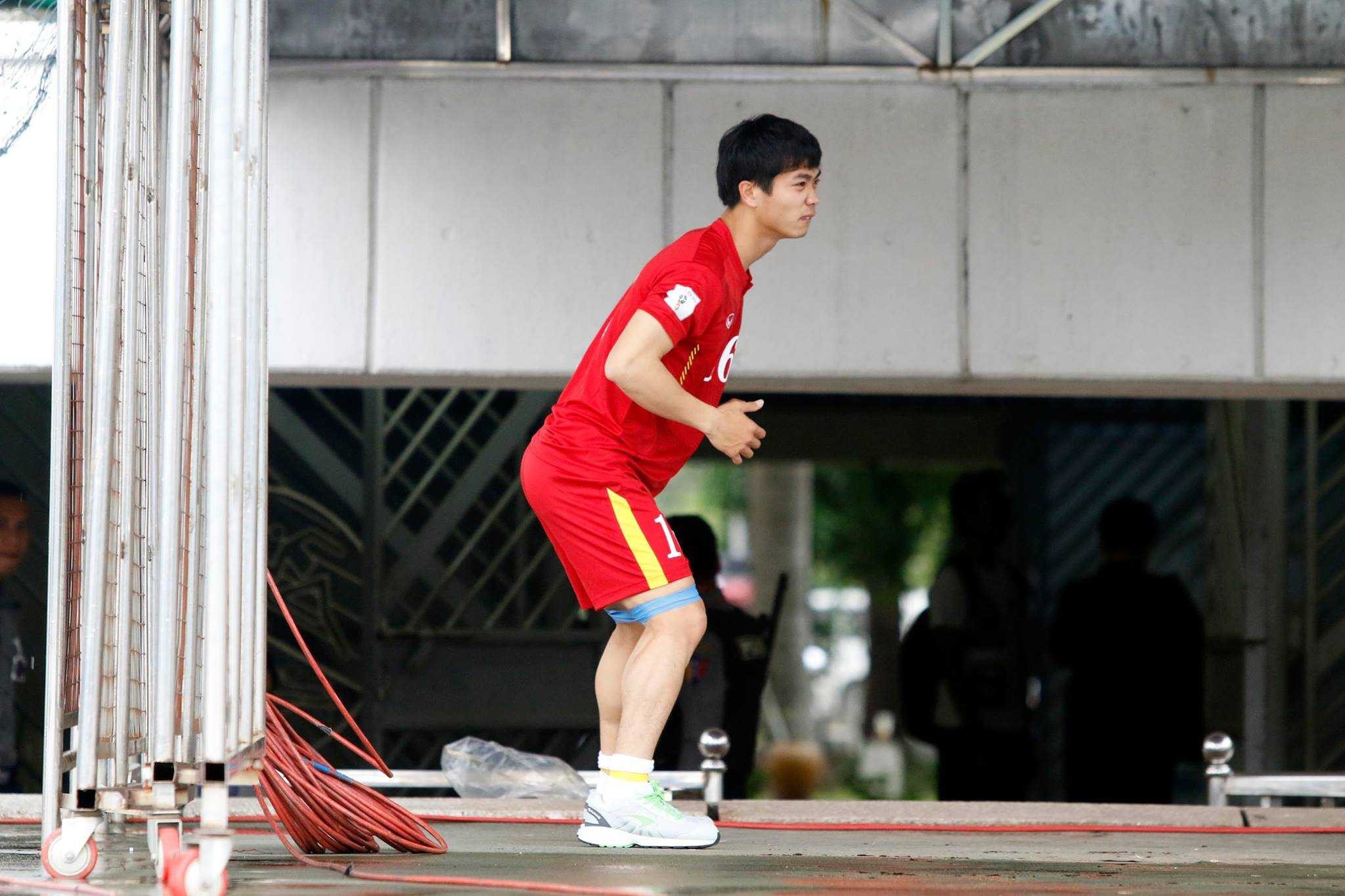 Do bị chấn thương, tiền đạo Công Phượng hôm nay vẫn phải tập riêng ở ngoài sân với bác sĩ đội tuyển. Ở trận đấu với Syria, Công Phượng đã bị đau nhẹ, theo HLV Nguyễn Hữu Thắng là bị bong gân cổ chân.