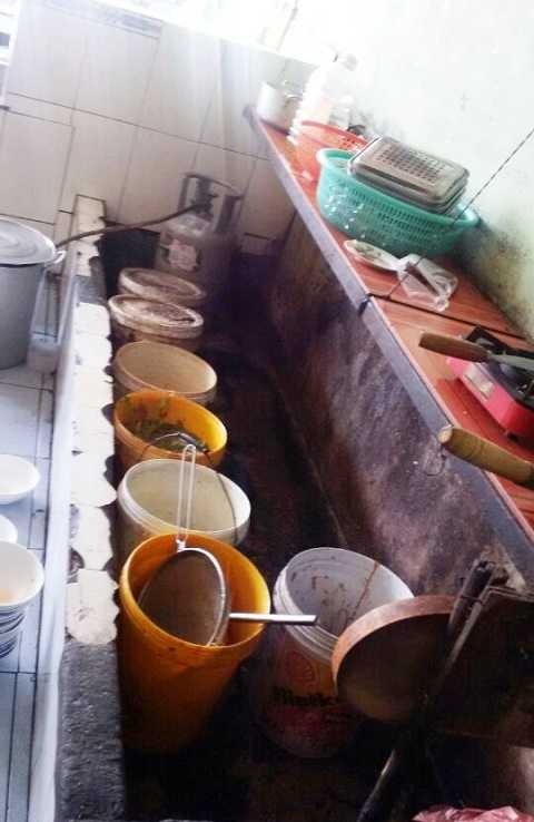 | Đoàn kiểm tra thuộc Công an quận 2 và UBND phường Bình An kiểm tra việc sử dụng lao động và Vệ sinh ATTP ở quán phở. Đây là vị trí để thức ăn thừa được ghi nhận bên trong quán phở Lý Quốc Sư. |