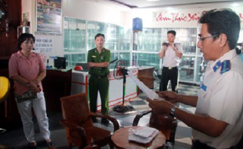 | Chủ khách sạn Long Thành nghe cơ quan đọc quyết định kê biên tài sản |
