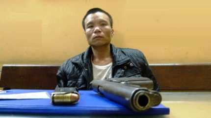 Cảnh sát thu được từ người đàn ông này khẩu súng quân dụng dạng K54, hộp tiếp đạn 6 viên, trong đó có một viên đã lên nòng.