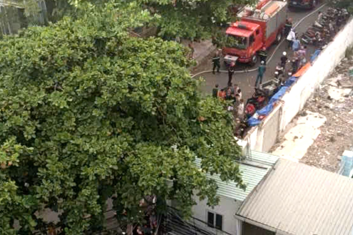 Khoảng 17h, đám cháy bùng lên, khói bốc nghi ngút khiến người dân sống trong khu vực này hoảng loạn. Nhiều người mang bình chữa cháy dập lửa nhưng không thành.
