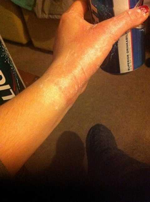 | Một người dùng mạng xã hội Twitter ở Ohio chụp ảnh bàn tay bị bỏng sau khi hất nước sôi ra không trung |