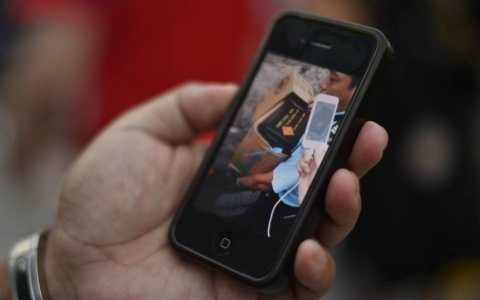 | Một người biểu tình chụp lại được cảnh một cảnh sát chuyển những thùng đạn hơi cay |