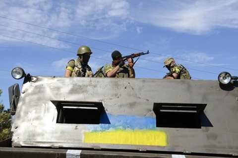 | Binh sĩ Ukraine tại Novoazovsk, thuộc vùng Donetsk hôm 27/8 |
