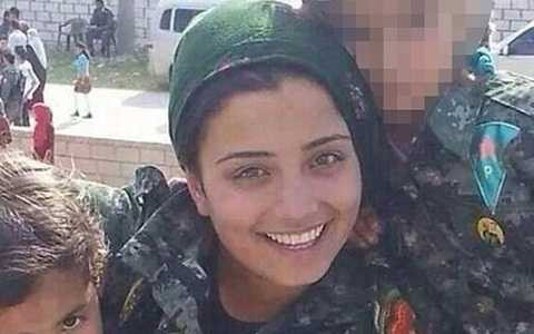 | Nữ chiến binh người Kurd có tên Arin Mirkin đã cho nổ tung thân mình tại một vị trí của quân IS, ngay sát thị trấn biên giới Kobane |