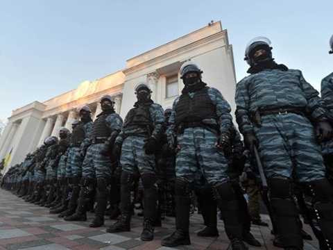 | Cảnh sát chống bạo động Ukraine triển khai quanh tòa nhà Quốc hội |