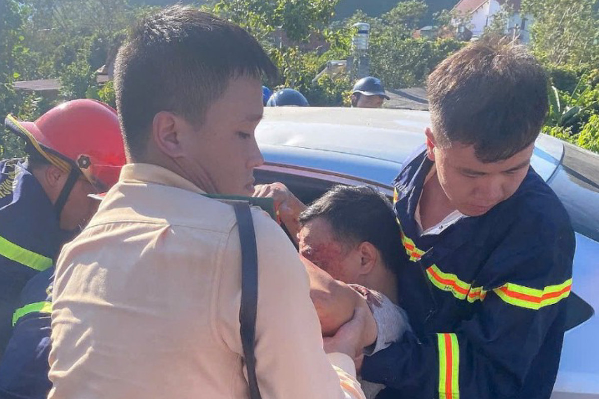 Giải cứu tài xế mắc kẹt trong xe sau tai nạn