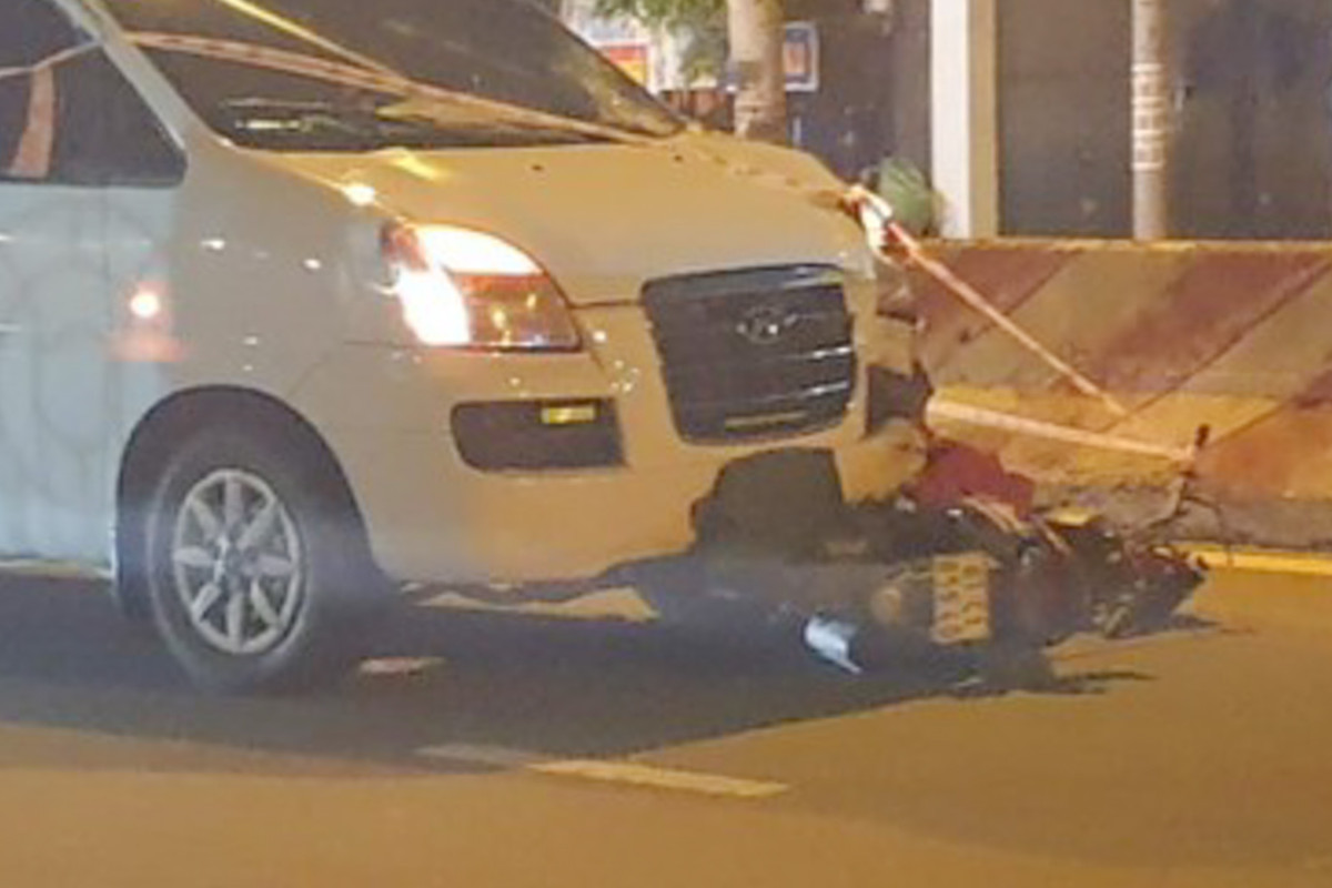 Anh Q. bị xe cuốn vào gầm ô tô, tử vong tại chỗ; chiếc xe máy hư hỏng nặng.