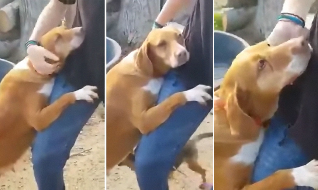 Ban đầu, chàng phóng viên hơi sững sờ, bối rối, không biết phải làm gì trước tình huống này. Sau đó, đáp lại cái ôm thân tình của chú chó, anh bắt đầu đáp lại bằng những cái vuốt ve. Giữa chó và người dường như có sự kết nối đặc biệt, chú chó càng lúc càng nũng nịu như không muốn chàng phóng viên rời đi.