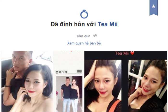 Tiến Thành và Trà My đã có một thời gian dài yêu nhau nhưng phải tới hôm nay (13/3), tiền vệ đang khoác áo B.Bình Dương mới công khai tình cảm của mình bằng việc kết hôn với hot girl Trà My trên facebook.