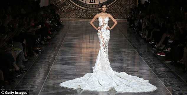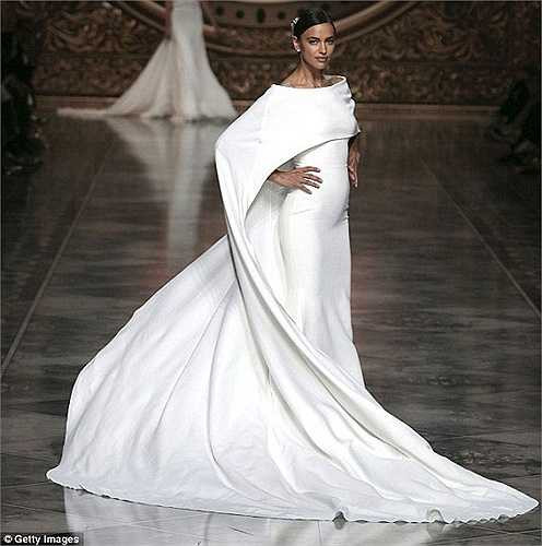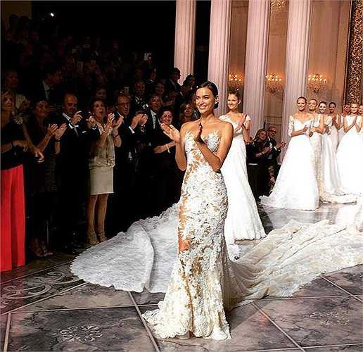 Irina trình diễn một mẫu váy cưới khác của Pronovias.