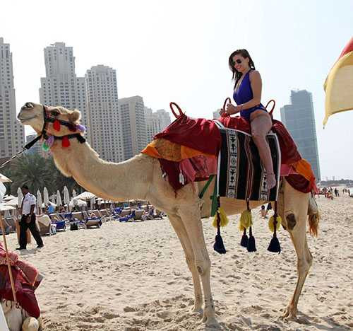 Tranh thủ kỳ nghỉ cuối tuần tại Dubai, tình cũ của Ryan Giggs đã thử cảm giác mới lạ khi cưỡi lạc đà