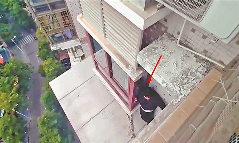 Ngay lập tức, sở điều động 2 xe chuyên dụng và 12 cảnh sát cứu hộ đến hiện trường để giải cứu người bị nạn. Khi đến nơi, họ phát hiện bệ tường bên ngoài tầng 18 không có hàng rào bảo vệ, cửa sổ chống trộm xung quanh lại bị bịt kín bằng dây thép, không có lối vào. Người đang mắc kẹt đi chân trần, không dám cử động, lên không được, xuống cũng không xong.