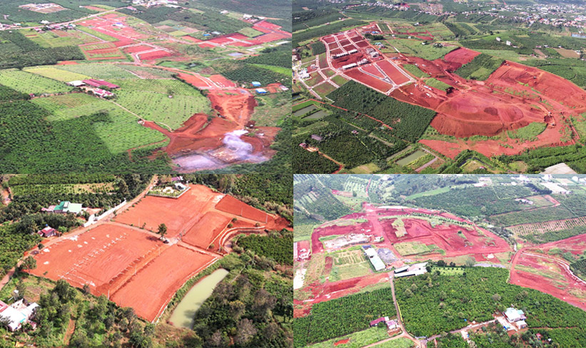 Những quả đồi ở Lâm Đồng bị cạo trọc màu xanh để phân lô, tách thửa. (Ảnh: Thy Huệ)