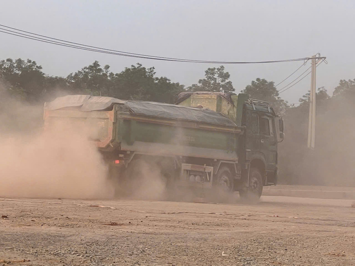 Ghi nhận của PV Báo Điện tử VTC News, trong nhiều ngày tháng 3/2025, Tỉnh lộ 15 luôn phải gánh mật độ dày đặc các xe chở đất khiến tuyến đường này mờ trong khói bụi.