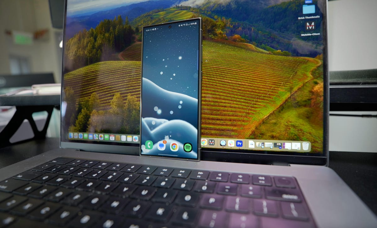 Màn hình như được cắm vào laptop, nhưng thực ra tất cả đều được chiếu lên bởi S24 Ultra.