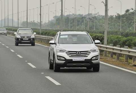 Hai chiếc Hyundai SantaFe thử nghiệm lần này là bản máy xăng 2.4 đặc biệt với hệ dẫn động 4 bánh 4WD, phiên bản động cơ dầu cơ bản 2.2L dẫn động cầu trước. Do đó những trải nghiệm cùng SantaFe thực sự rõ nét.