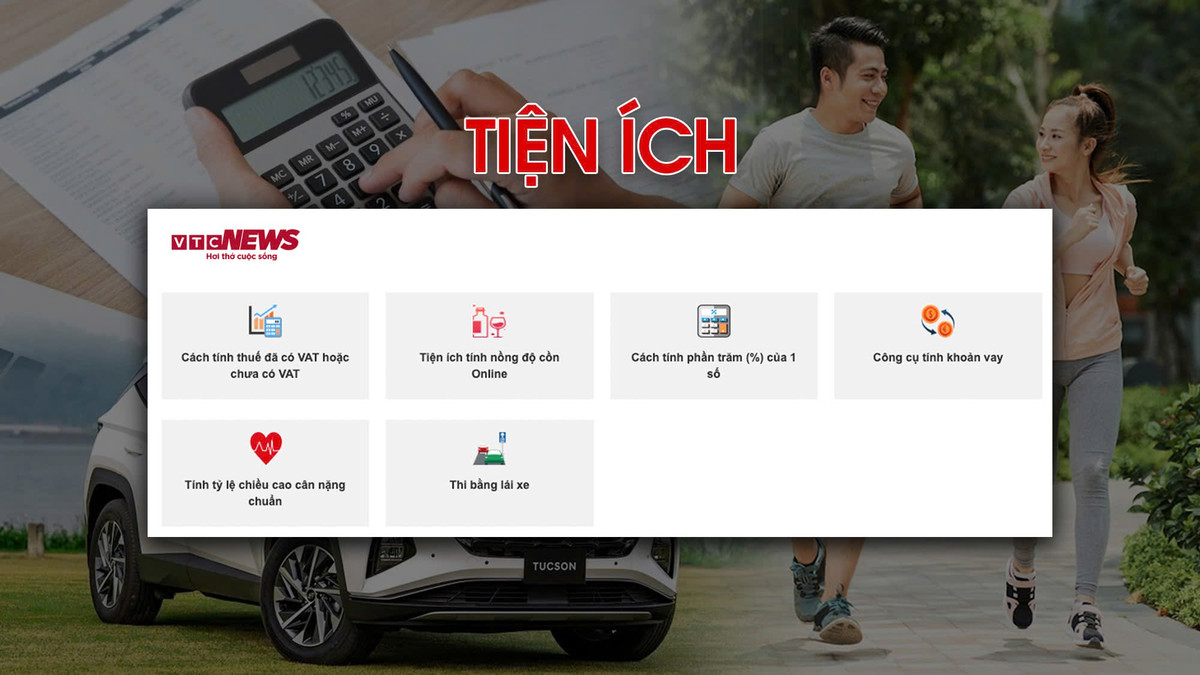 Tính nồng độ cồn, thi bằng lái xe, tính thuế VAT, click ngay Tiện ích VTC News