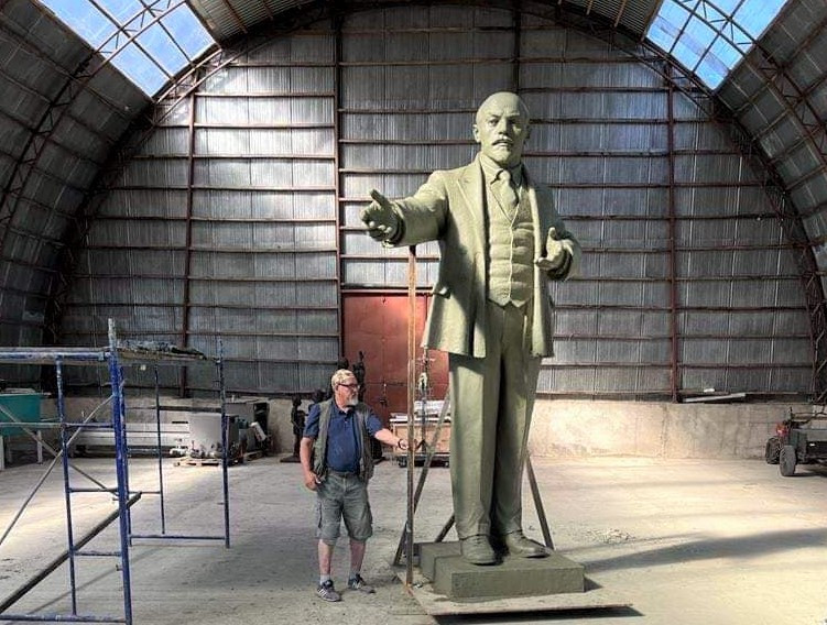 Nhà điêu khắc Nga Smirkin Igor Stepanovich bên cạnh tượng Lenin trong quá trình hoàn thiện tại Smolensk.