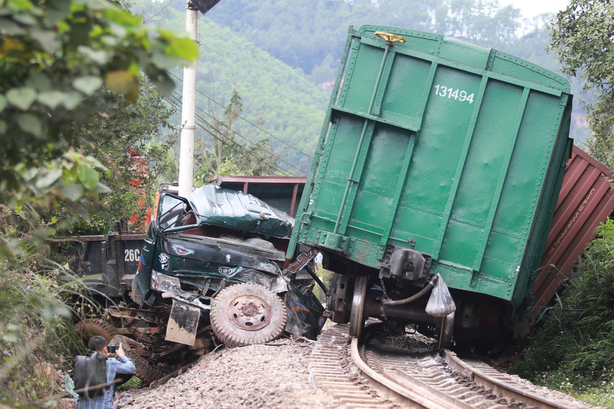 Tại hiện trường, tàu D18E603 bị hư hỏng, lật 3 toa, 1 đầu máy, hệ thống đường ray tại điểm va chạm bị hư hỏng khoảng hơn 50m. Chiếc xe tải biến dạng hoàn toàn phần đầu.