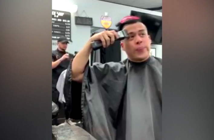 Táy máy nghịch dại trong lúc chờ làm tóc, anh chàng đẹp trai khóc dở mếu dở khi mất bay hàng lông mày.
