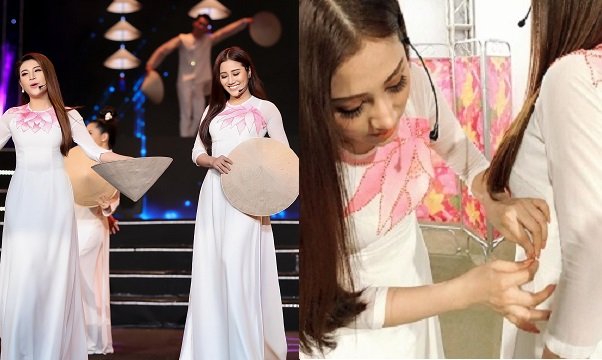 Là một trong những khách mời trình diễn tại chương trình gala 30 năm Hoa Hậu Việt Nam, Tố Ny bất ngờ gặp sự cố trang phục khi chiếc áo dài trắng cô mặc bị rách một mảng rất lớn ở phần hông ngay trước lúc ra sân khấu khiến nữ ca sĩ lúng túng.