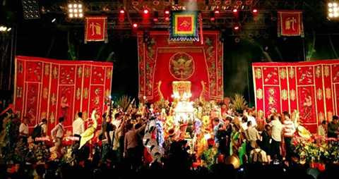 Tối hôm trước, hàng trăm nghệ sĩ ở khắp các lĩnh vực đã tề tựu dự buổi lễ cúng tổ nghề của sân khấu kịch do danh hài, nghệ sĩ Hoài Linh chủ trì. Từ năm 2010, nhà nước quyết định chọn ngày 12/8 âm lịch để làm ngày giỗ Tổ ngành sân khấu.