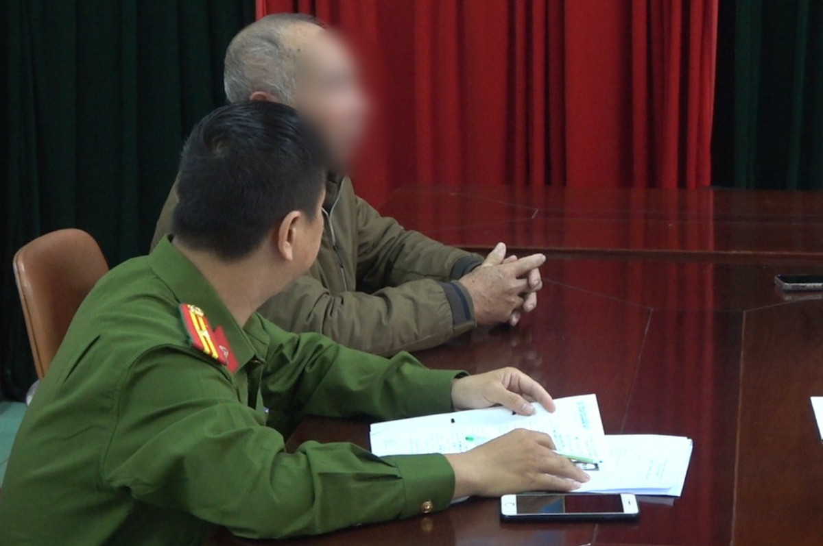 Cán bộ Công an TP Huế đang lấy lời khai đối với Lê Phú Tuấn. (Ảnh: CACC)
