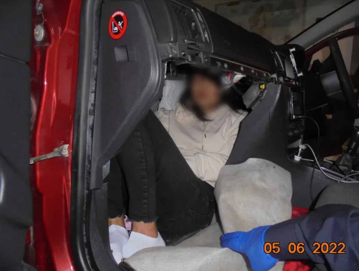 Tuy nhiên, các sĩ quan Lực lượng Biên phòng Anh khám xét xe và phát hiện điểm đáng ngờ sau hộp đựng găng tay. Sau đó, họ bắt đầu tháo dỡ phần đầu xe và tháo hộp đựng găng tay. Qua đó, lực lượng chức năng đã phát hiện một phụ nữ Việt Nam đang trốn tại đây.