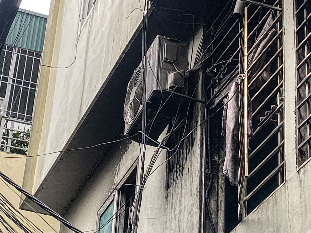 Mặt tiền khu vực tầng 5 ám khói đen kịt.