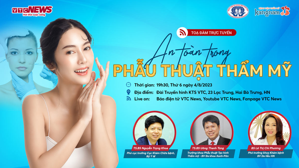 Nhằm giúp độc giả có thêm thông tin hữu ích để sử dụng dịch vụ phẫu thuật thẩm mỹ an toàn, hiệu quả, hạn chế tối đa những rủi ro, Báo điện tử VTC News tổ chức Tọa đàm trực tuyến "An toàn trong phẫu thuật thẩm mỹ" với sự tham gia của TS.BS Nguyễn Trọng Khoa - Phó Cục trưởng Cục Quản lý Khám, chữa bệnh; TS.BS Uông Thanh Tùng - Trưởng khoa Phẫu thuật Tạo hình thẩm mỹ - Bệnh viện Đa khoa Xanh Pôn và BS Chuyên khoa II Lê Thị Chi Phương - Phó trưởng khoa Khám bệnh - Bệnh viện Da liễu Hà Nội.