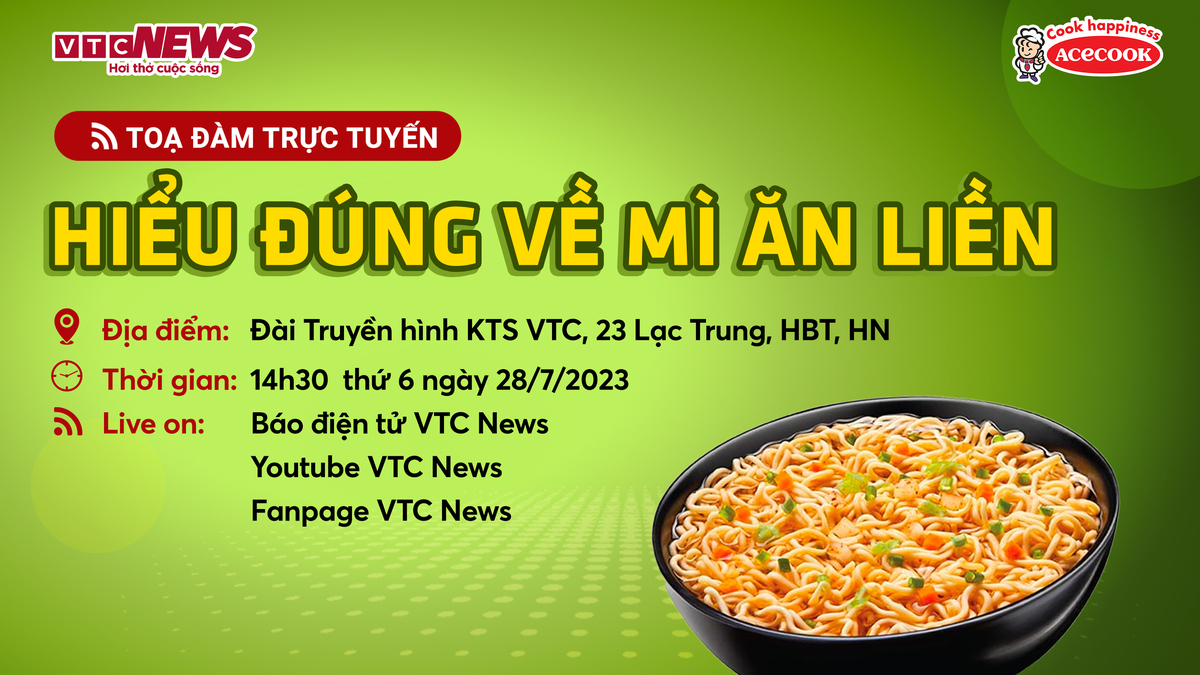 Chương trình tọa đàm với chủ đề "Hiểu đúng về Mì ăn liền" do Báo điện tử VTC News tổ chức với những chia sẻ của Chuyên gia dinh dưỡng - PGS.TS.BS Bùi Thị Nhung - Trưởng khoa Dinh dưỡng học đường và ngành nghề, Viện Dinh dưỡng Quốc gia, PGS.TS.BS Nguyễn Thị Lâm - Nguyên Phó Viện trưởng Viện Dinh dưỡng Quốc gia và chị Kiều Vui - phụ huynh trạng tý Muối Dubai sẽ cùng đi tìm sự thật về Mì ăn liền và đưa ra lời khuyên bổ ích giúp các bậc phụ huynh, người tiêu dùng có cái nhìn thấu đáo hơn về Mì ăn liền.