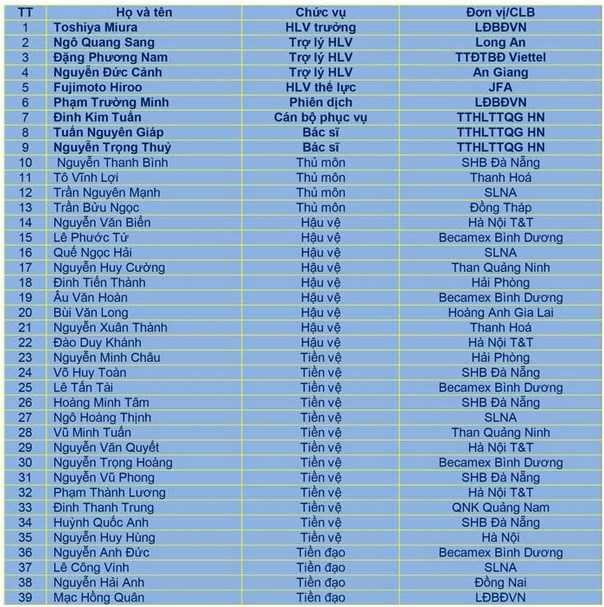 | Danh sách tập trung ĐT Việt Nam đi tập huấn tại Nhật Bản |