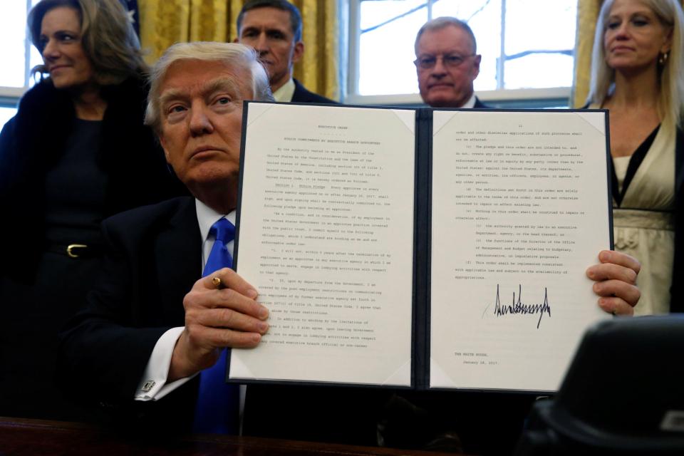 Nguyên đơn trong các vụ kiện chống lại lệnh cấm cho rằng các biện pháp nhằm vào người theo đạo Hồi vi phạm hiến pháp Mỹ và không theo đuổi các mục tiêu an ninh như chính phủ tuyên bố. Do đó, 2 tòa cấp dưới quyết định tạm ngưng thi hành lệnh cấm trên toàn quốc.