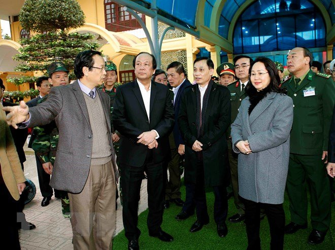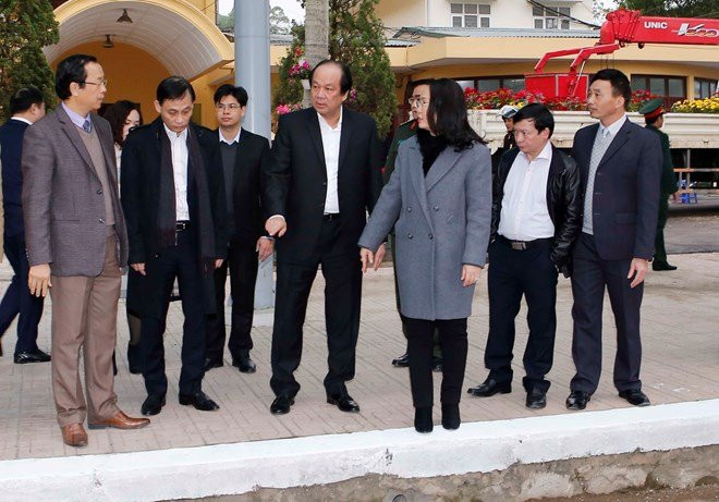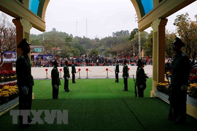 Bộ trưởng Chủ nhiệm Văn phòng Chính phủ và Thứ trưởng Ngoại giao Lê Hoài Trung đi thị sát Ga Đồng Đăng chiều 25/2.