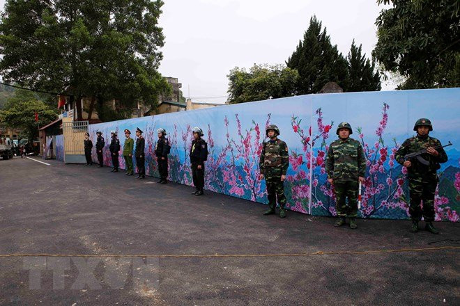 Xe bọc thép xuất hiện trước ga Đồng Đăng, nơi dự kiến sẽ diễn ra cuộc đón Chủ tịch Triều Tiên Kim Jong un tới thăm hữu nghị chính thức Việt Nam