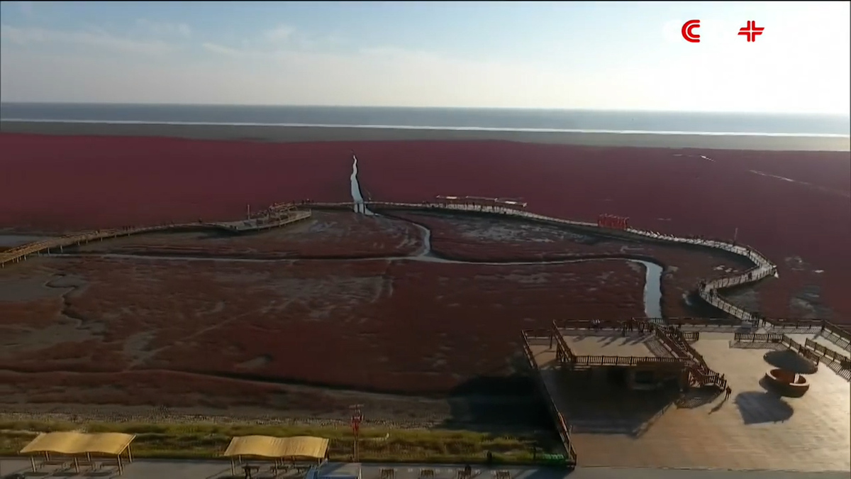 Cứ mỗi độ thu sang, khu vực đầm lầy ở phía Đông Bắc Trung Quốc lại biến thành một bãi biển đỏ thẫm sống động và đầy màu sắc được mang tên Biển Đỏ (Red Beach).