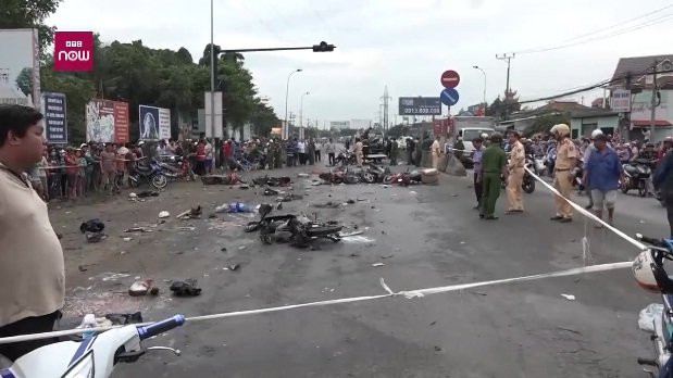 Toàn cảnh container đâm hàng chục xe máy khiến 20 người thương vong ở Long An