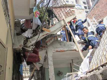 Vụ nổ để lại những mảnh tường và bê tông vụn vỡ...