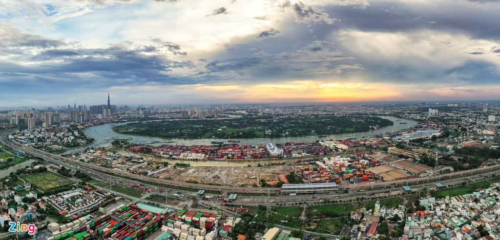 Tương tự nhà máy Thép Thủ Đức, khu đất cảng ICD Sotrans hơn 10 ha (bên phải) nằm trong dự án khu phức hợp VICEM Hà Tiên hiện tại vẫn chưa được di dời.