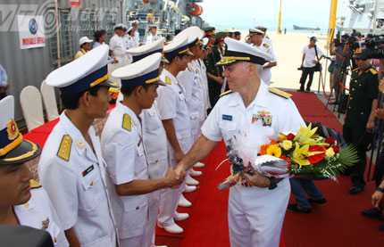 | Sáng 21/4, đội tàu Hải quân Hoa Kỳ gồm tàu tên lửa dẫn đường USS Chung-Hoon và tàu cứu hộ USNS Salvor, cùng gần 400 sỹ quan, thủy thủ đã đến Đà Nẵng |