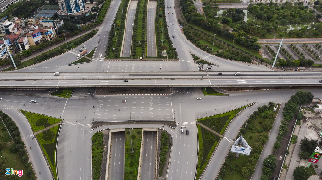 Đường vành đai 3 trên cao đoạn Nguyễn Xiển. Đây là tuyến đường có mật độ ôtô lưu thông dày đặc mỗi ngày. Nhưng vào những ngày thực hiện cách ly toàn xã hội, nơi đây rất thưa thớt xe cộ.