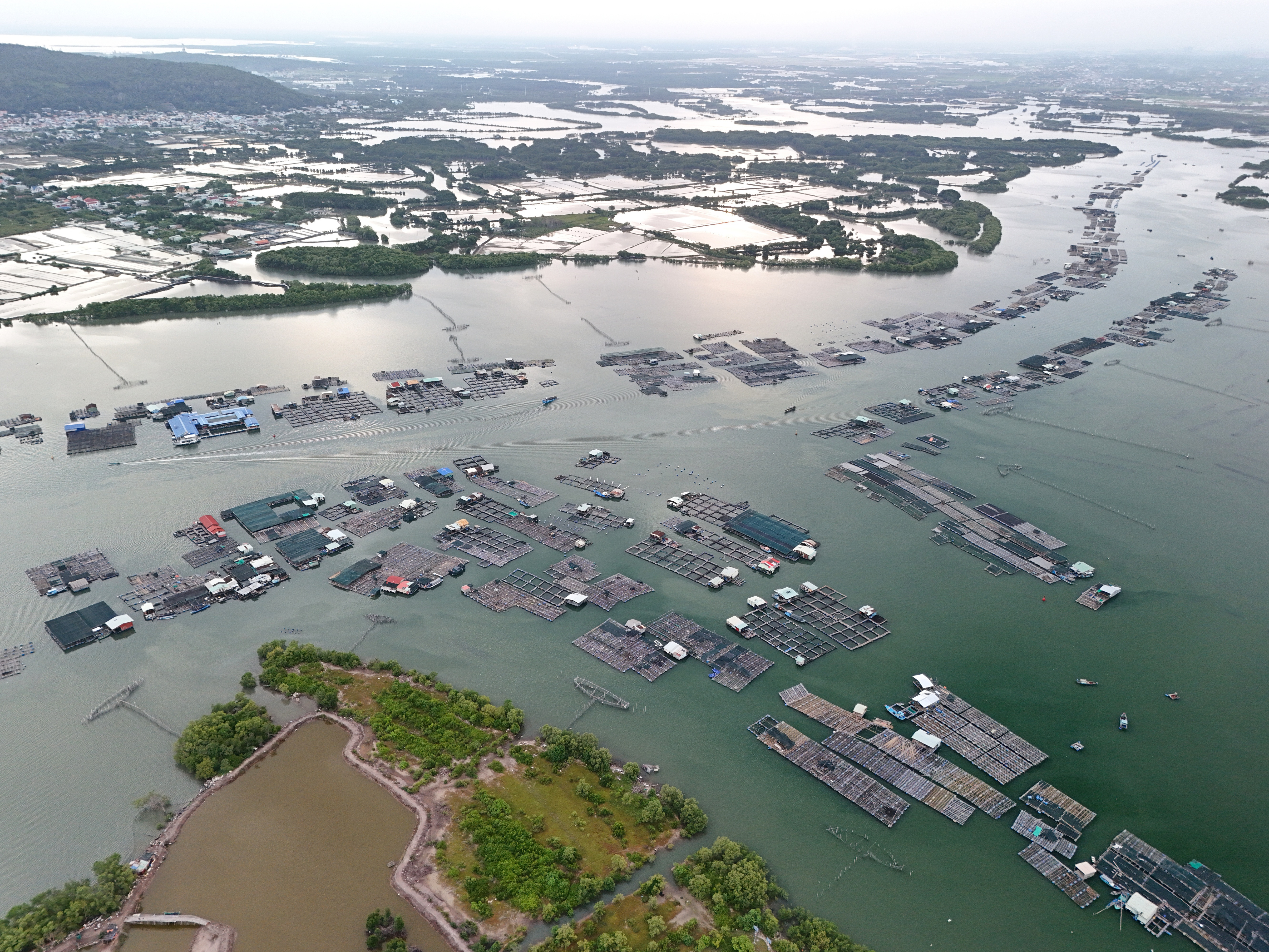 Dọc sông Dinh - ranh giới tự nhiên giữa đảo Gò Găng và thủ phủ du lịch biển của TP.HCM (Vũng Tàu) có hàng trăm lồng bè nuôi thủy hải sản kết hợp kinh doanh dịch vụ ăn uống, tạo nên sinh kế chủ lực của nhiều hộ dân địa phương.
