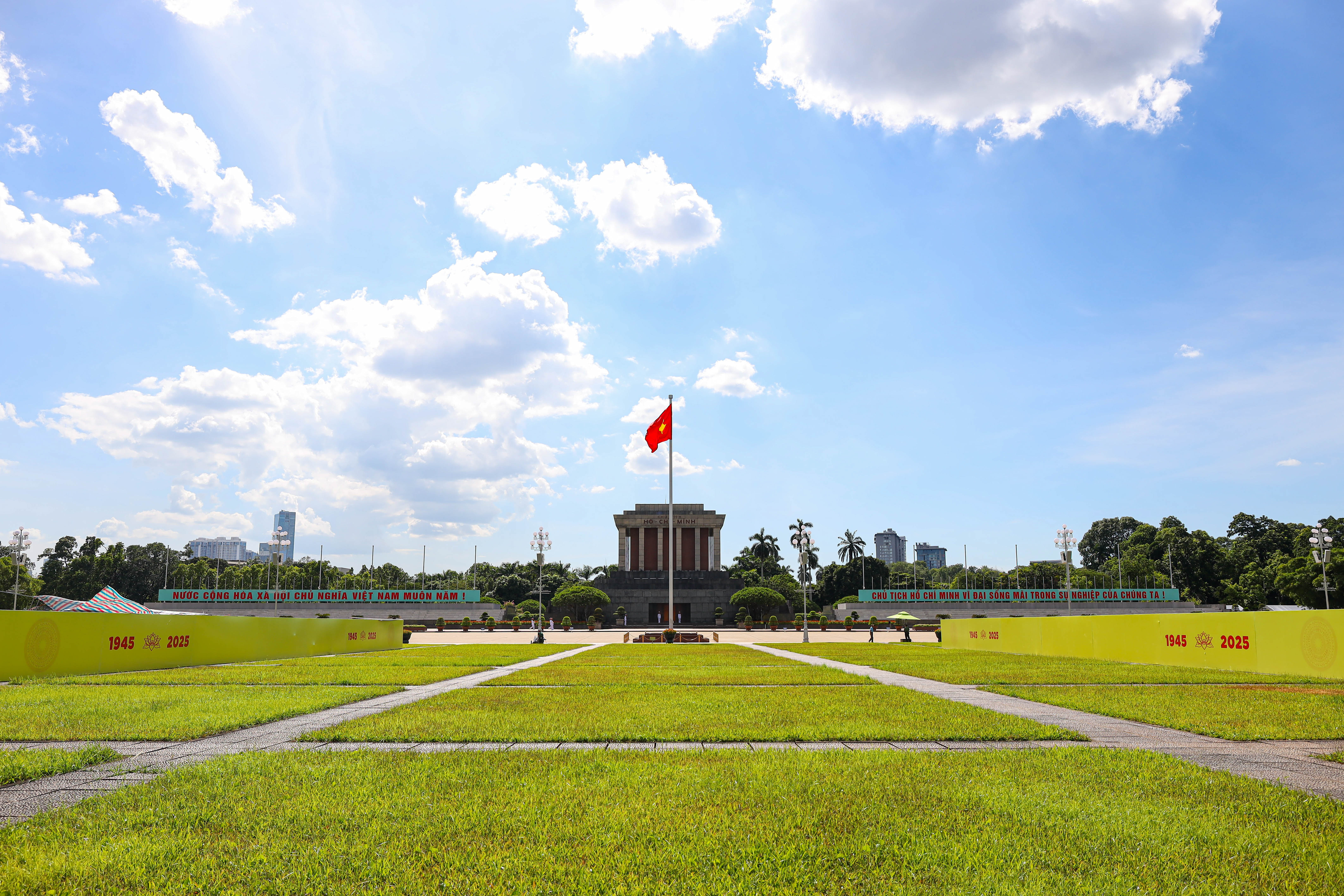 Phía trong khu vực bãi cỏ tại Quảng trường Ba Đình, các hạng mục cũng đang được gấp rút hoàn thành.