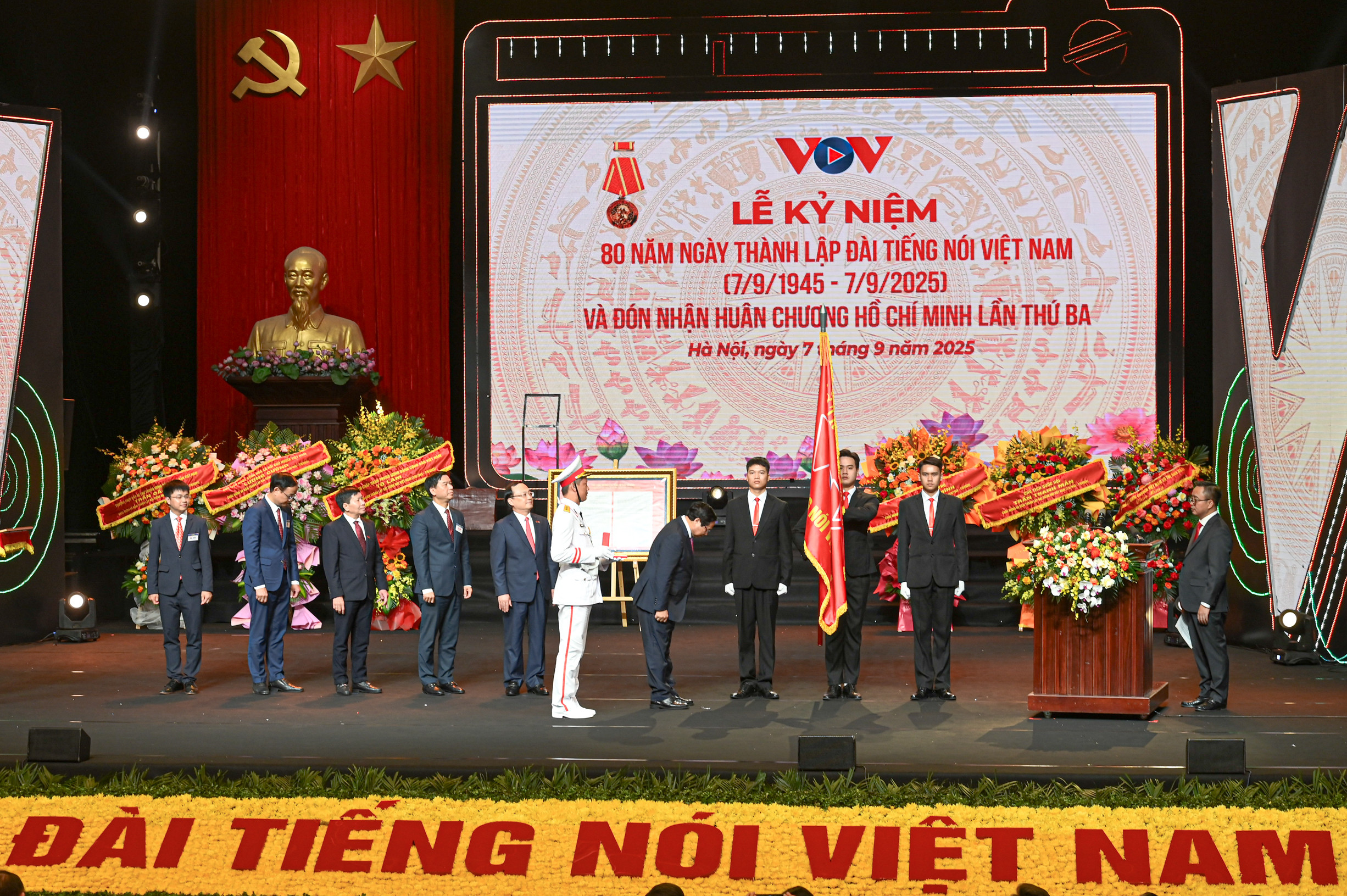 Sáng 7/9, tại Cung văn hóa hữu nghị Việt Xô (Hà Nội), Đài Tiếng nói Việt Nam tổ chức Lễ kỷ niệm 80 năm Ngày thành lập (7/9/1945-7/9/2025) và đón nhận Huân chương Hồ Chí Minh lần thứ 3.