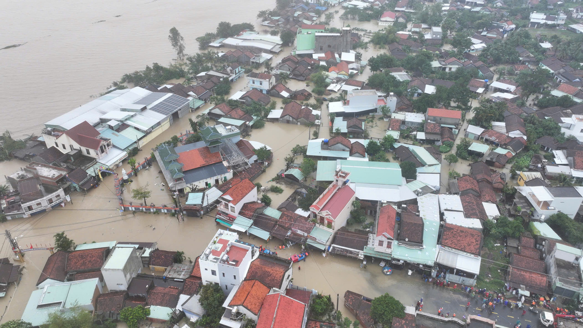 Tại tỉnh Khánh Hòa, nhiều địa phương chìm trong biển nước khi lũ trên sông Cái Phan Rang đạt đỉnh, trên mức BĐ3.