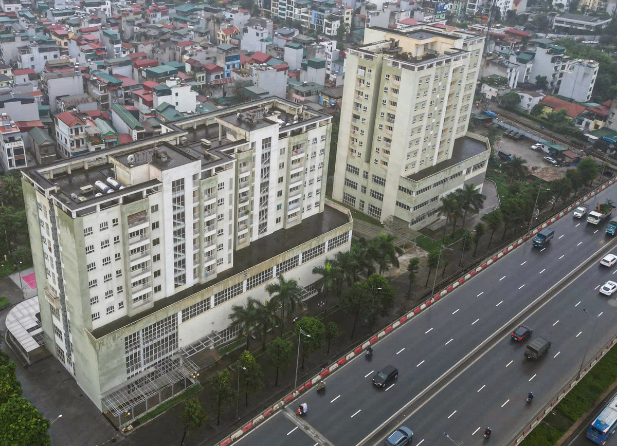 Hiện nay, cửa ra vào các tòa nhà đều trong tình trạng khóa kín, không gian bên trong chưa được đưa vào sử dụng, trống trải và phủ dày lớp bụi sau thời gian dài bỏ không.