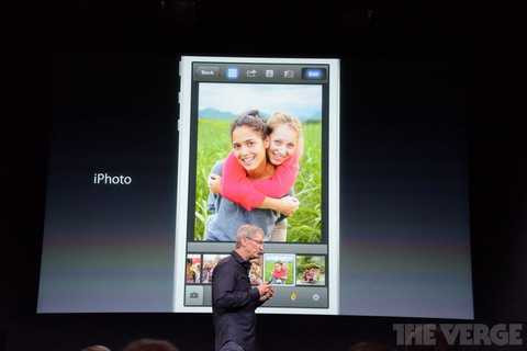 10:19:16: Cook nói về các ứng dụng iPhoto, iMovie.
