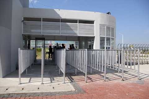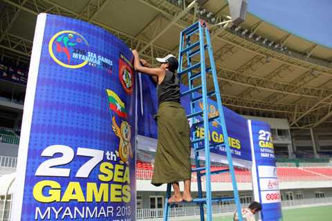 | Giống như tất cả các điểm thi đấu ở SEA Games 27, vào Zeyar Thiri phải qua những trạm kiểm soát an ninh. |
